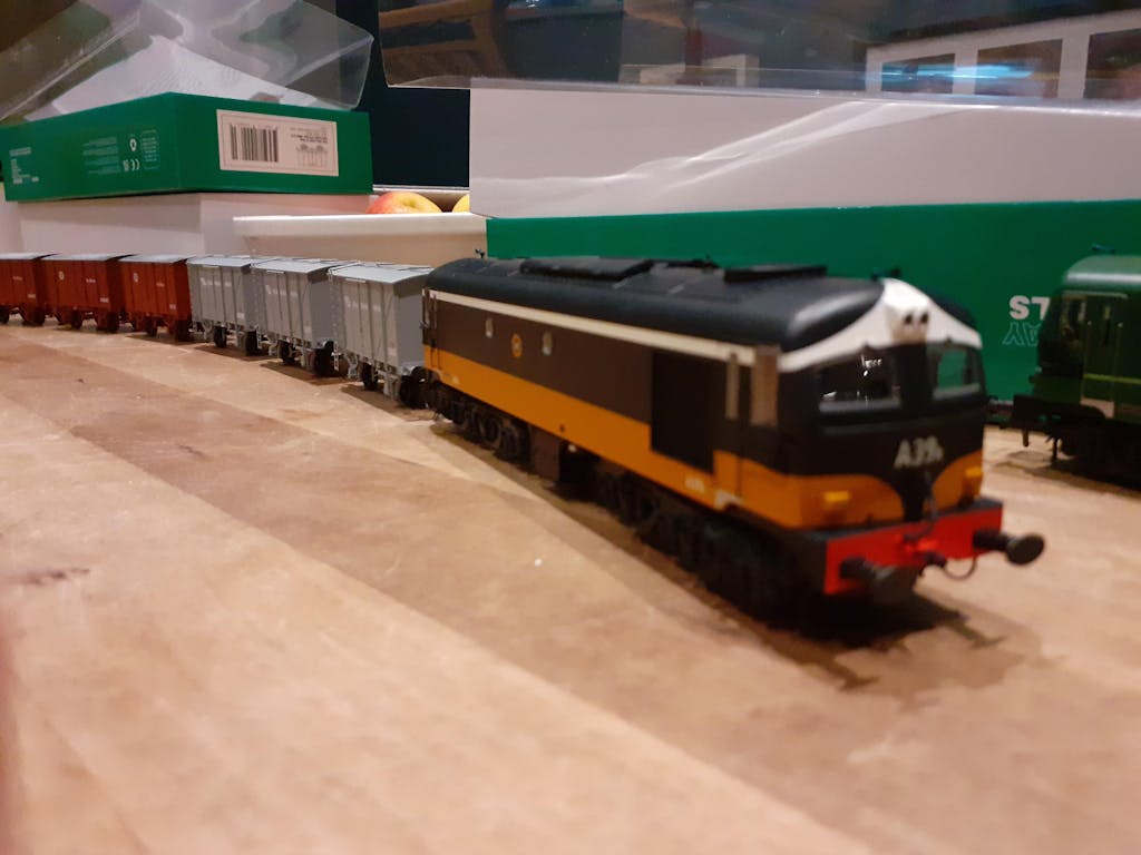 CIÉ embarked on a programme of rolling stock renewal beginning in the early 1950s, centring on Bulleid’s patented triangulated underframe construction. Among the more distinctive wagon types to appear was a series of bulk grain hoppers developed from the H Van design. These vehicles had a 12 ton capacity and augmented a fleet of earlier hopper wagons which had been constructed by the Great Southern Railways (GSR) in the 1930s and lasted in service until grain traffic ended in the mid-late 1970s.